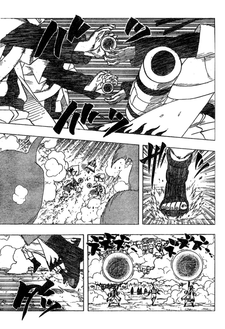 1. В волнах гнева... Naruto создает многократный разенган в воздухе. (Так же, как он сделал в борьбе с orochimaru, когда он был с 4 хвостами),